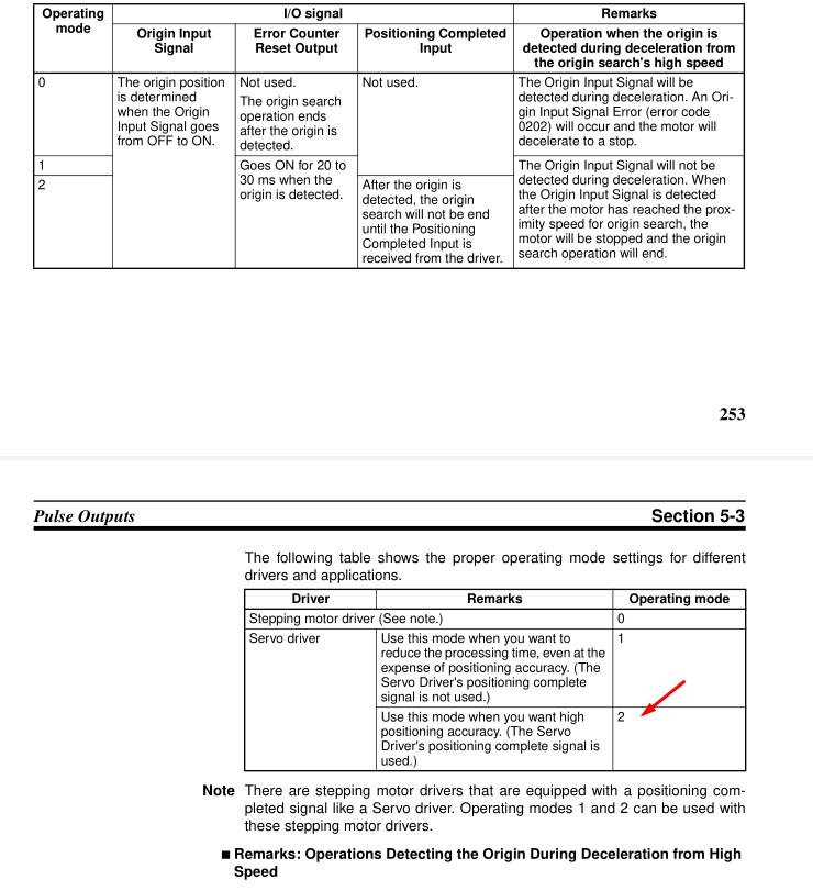 BobLfoot Posted December 16, 2022 Report Posted December 16, 2022 I am not an omron expert, but reading page 258 of the manual I propose the following: You have two signals at play here - "Origin Proximity Input" and "Origin Input". Using Detection Method 1 your system does the follwoing: 1) Moves at High Speed 2) Sees the "Origin Proximity Input" 3) Slows Down to Search Speed 4) Sees the "Origin Input" 5) Stops. What I suspect is happening is your two sensors are close together and some times the system see the "Origin Input" at the same instance as the "Origin Proximity" I would physically seperate the two sensor flags if practical and look for things to change. @pturmel Tell me I'm not all wet here.