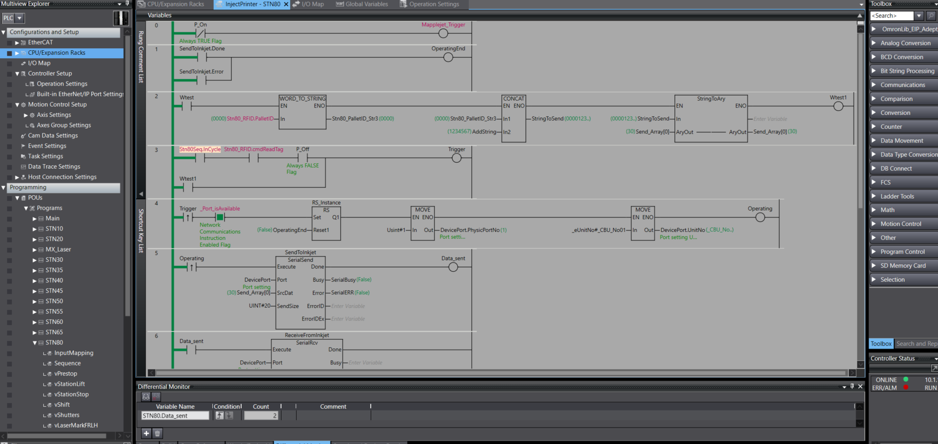wazed Posted Sunday at 02:56 PM Report Posted Sunday at 02:56 PM Good morning, Im reaching out to you for an inquiry about SCU22 serial card. Currently Im working on this project where Im trying to integrate NJ PLC and HX nitro inject printer through RS-232 serial cable. I have programmed the printer and the PLC but for some reason it's not sending the data Im looking for. I have double checked the baud rate, stop bits and Parity. They are similar to the printer. At this point I think it might be the serial card or PLC program and there's no way to verify it. Inject printer is looking for ASCII data to receive. But sometimes I receive "??" randomly and most of the time I dont receive anything at all. I have attached a few images for your review. It would be great to have your input.